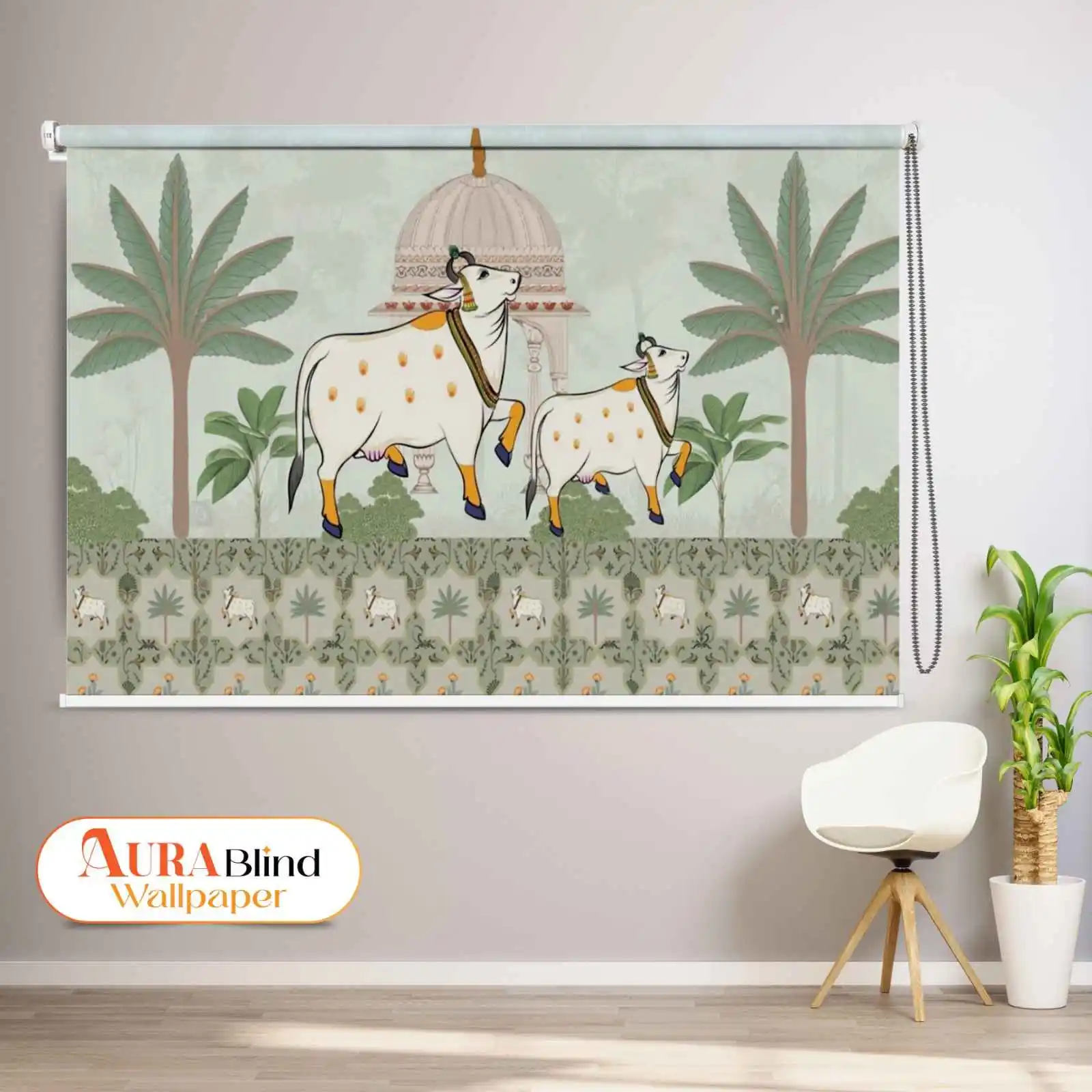 Abstract Blind, Artistic Blind, Cow Roller Blinds Design, Customized Roller Blinds, Ethnic Roller Blind, Indian Cultural Blinds Designs Collection, Kamdhenu Cow Roller Blinds Collection, Made to Measure, Mughal Arch Design Roller Blinds, Pichwai Art, Spiritual Roller Blind, Traditional Indian Blinds Designs Brand: Aura Blind and Wallpaper