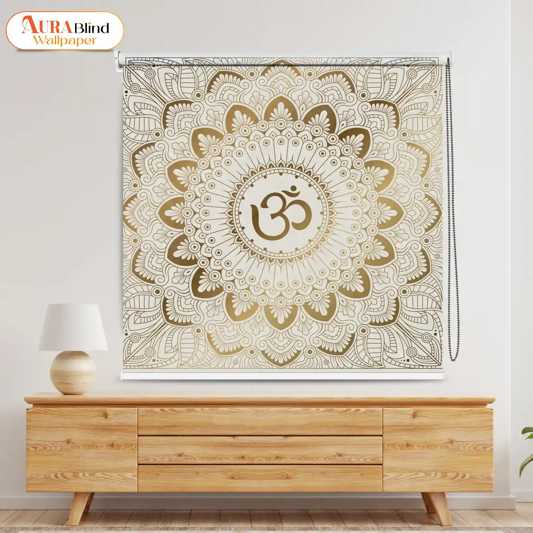 Artistic Blind, Customized Roller Blinds, Decorative Roller Blinds, Hindu God Window Blind, Indian Cultural Blinds Designs Collection, Made to Measure, Meditation Room Roller Blind, om, Om Symbol Blind Decor, Printed Roller Blind, Spiritual Roller Blind, Temple Decor Blinds, Traditional Indian Blinds Designs, Vastu Window Roller Blinds Decor, Yoga Studio Window Blinds Brand: Aura Blind and Wallpaper