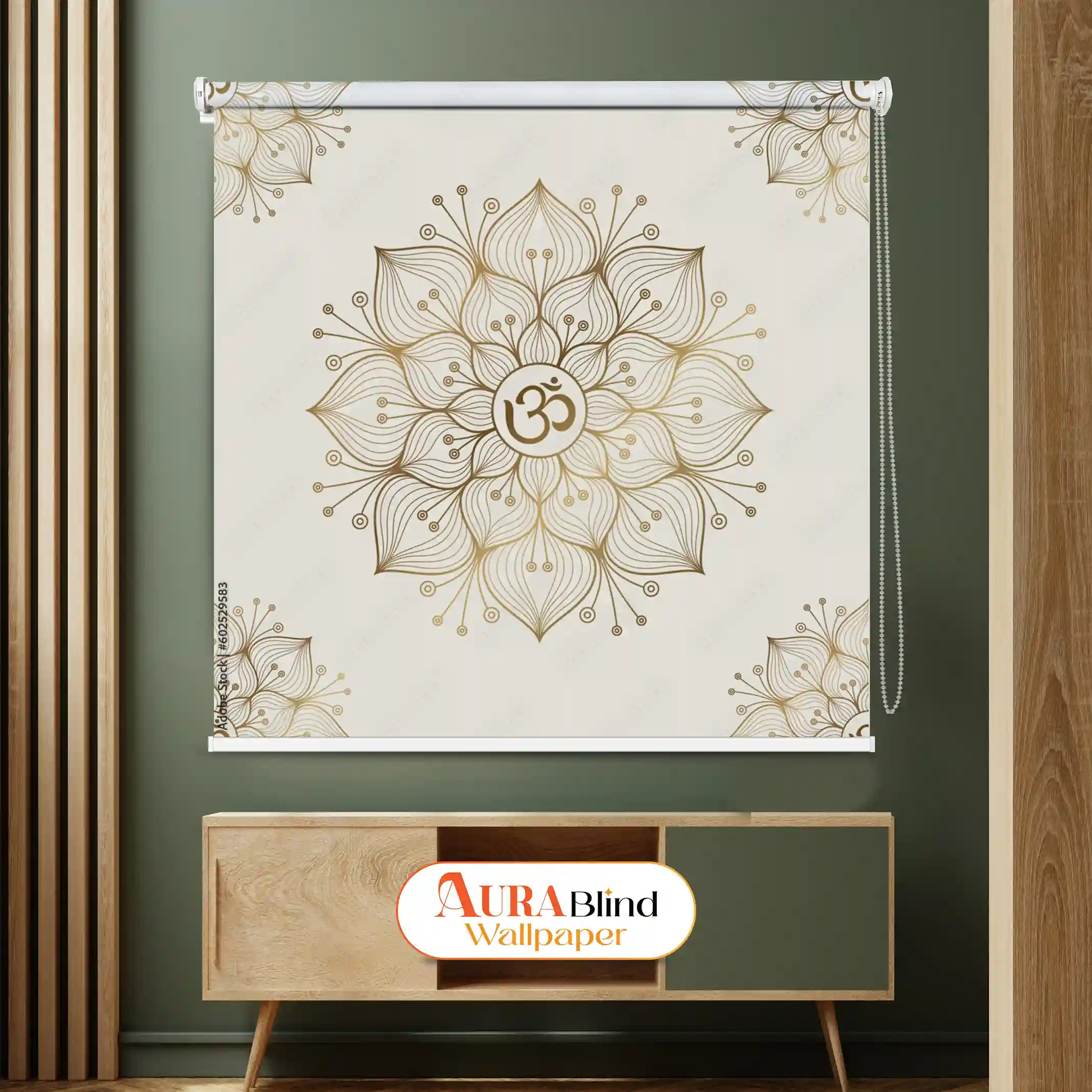 Bring divine harmony and timeless elegance into your interiors with this Golden Om Lotus Design Mandala Spiritual Pooja Room Roller Blind. Featuring a beautifully detailed mandala design with the sacred Om symbol at the center, this blind radiates positivity, balance, and spiritual energy. The soft neutral background paired with golden line art creates a soothing yet luxurious visual appeal, making it ideal for pooja rooms, meditation spaces, yoga studios, and modern living areas.