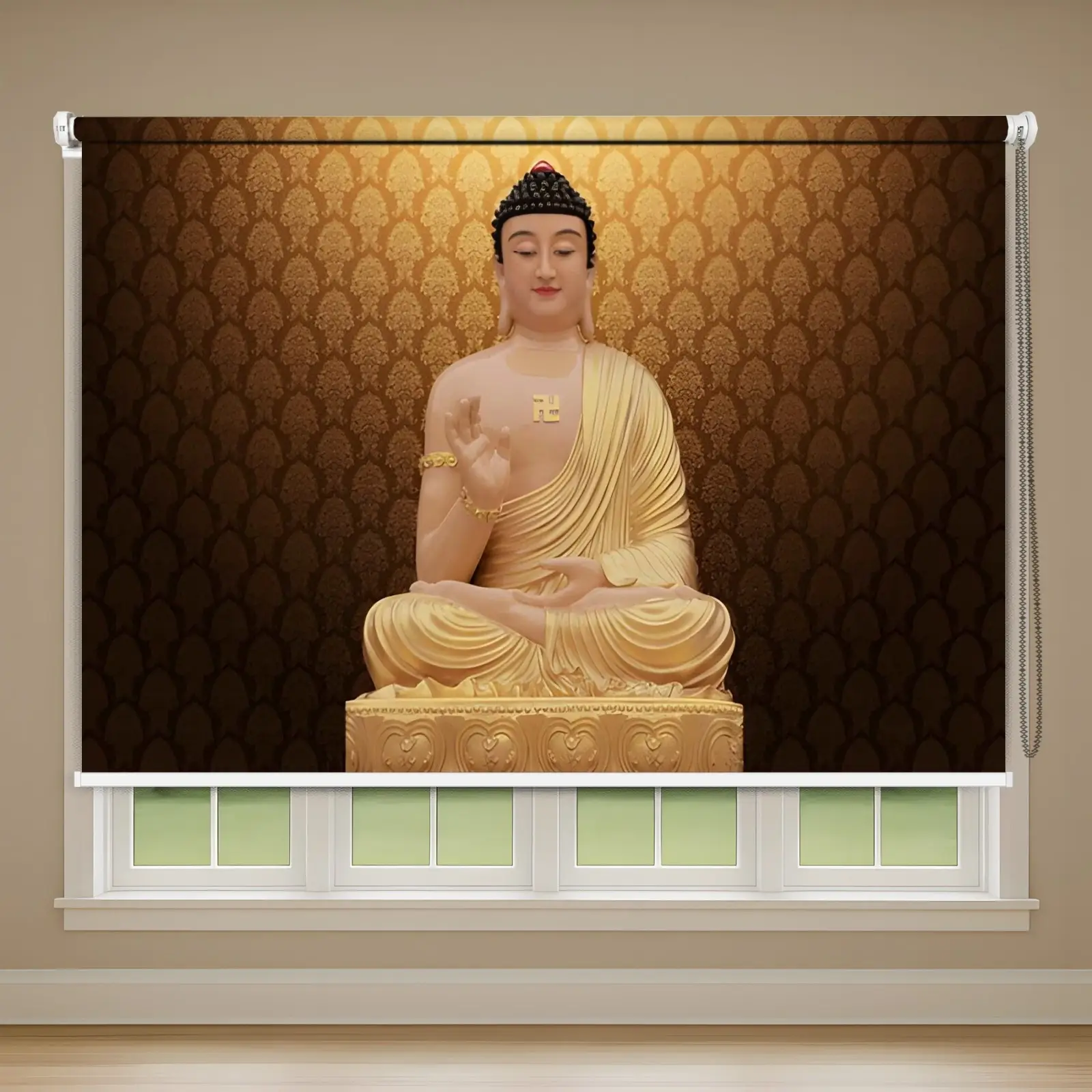 Be the first to review “Golden Serenity Buddha Roller Blind with Ornate Pattern Background” Cancel reply