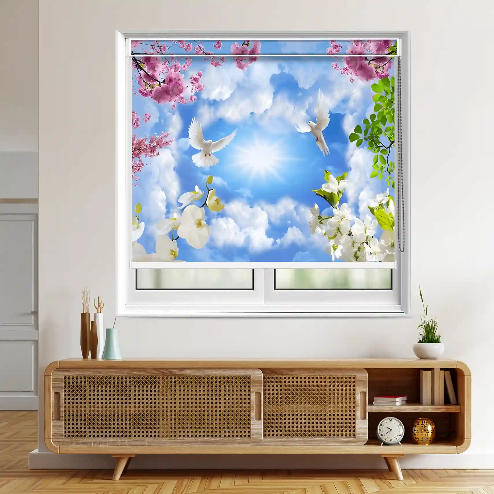 Be the first to review “Heavenly Sky and White Doves Floral Roller Blind”