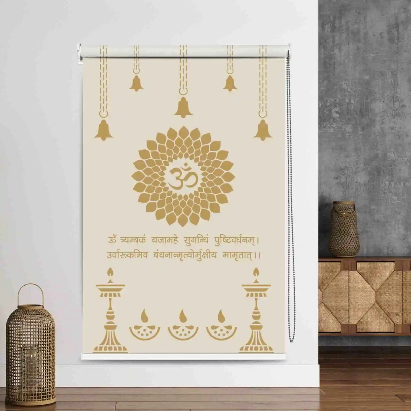 Om (ॐ) and Vedic Shloka design Roller Blind for Puja Room and Temple