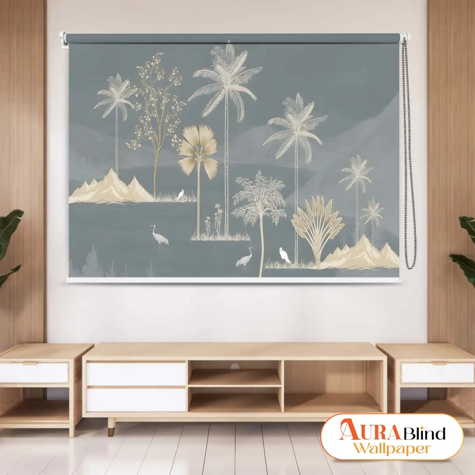 Decorate your living space with this Scenic Palm Landscape Tropical Nature Roller Blind, featuring a polished nature illustration of palm palms, delicate mountain shapes, and beautiful birds against a soothing blue-grey background. The artistic design offers a relaxing, resort-inspired atmosphere while remaining modern and beautiful. This Tropical Roller Blind serves as both an attractive wall feature and a functional window covering, providing privacy and light control without taking over your area. It looks well in living rooms, bedrooms, lounges, and imaginative interiors, especially with neutral furniture and warm wood finishes.